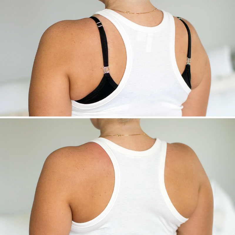 Dieser Artikel hat zwei Verwendungszwecke. Zum einen versteckt er die BH-Träger beim Tragen eines Racerback-Oberteils. Außerdem hält er die BH-Träger da, wo sie hingehören – kein lästiges Rutschen von den Schultern, und der BH sitzt einfach besser. Im Vergleich mit anderen BH-Haltern haben diese runden Clips keine scharfen Kanten. Deshalb sind sie kaum am Rücken spürbar und so auch gut für das Fitness-Studio geeignet.