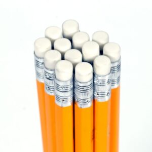 Traditionelle und robuste Bleistifte aus gelb gefärbtem Holz mit dazugehörendem Radiergummi. Sowohl der Stift als auch der Gummi sind von hoher Qualität. Bitte wählen zwischen Paketen mit 10 oder 20 Stiften.