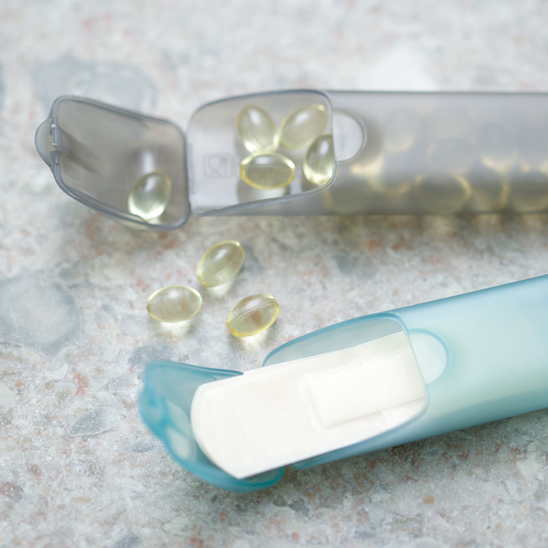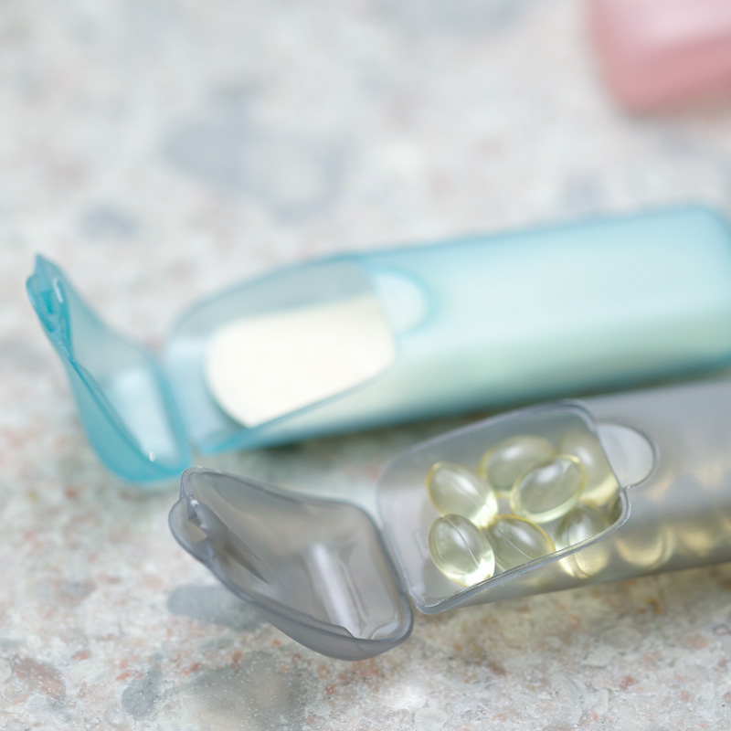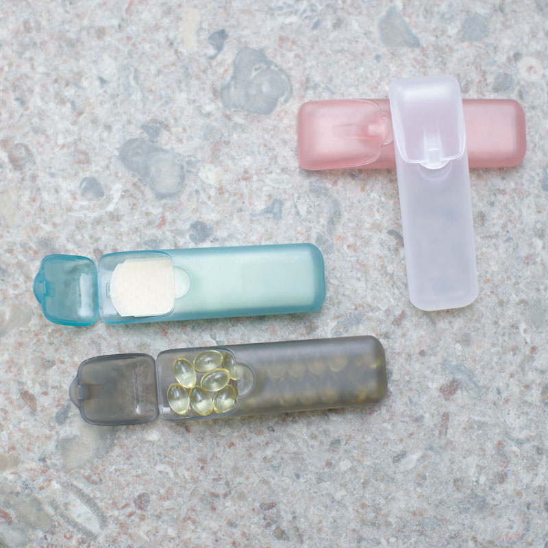 Die Boxen sind kompakt (ca. 8,6 x 2,7 x 1,3 cm) und aus langlebigem, mattiertem PP-Kunststoff mit einem sicheren Verschluss gefertigt. Ideal für Reisen oder zur Organisation von Schubladen und Taschen. Wird im praktischen 4er-Pack in gemischten Farben geliefert.