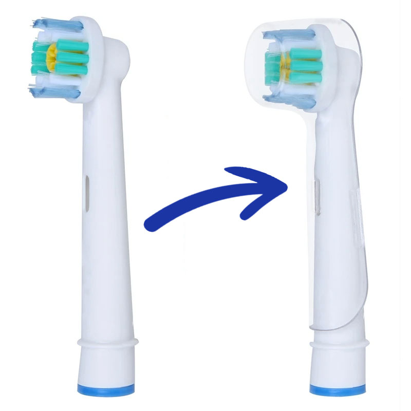 Hygiene-Schutz für elektrische Zahnbürsten, der auch verbogenen Borsten entgegenwirkt. Geeignet für alle Standardbürsten mit rundem Bürstenkopf. Das Produkt ist transparent, einfach zu reinigen und einfach auf den Bürstenkopf zu setzen.